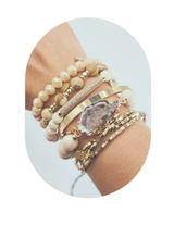- 7mm Faceted Creamy Howlite Beads With Gold Brass Zircon Tube