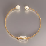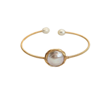 18K Gold-Filled Real Freshwater Pearl Open Bangle