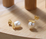 Chloe 14k Gold Plated Freshwater Pearl Stud Earrings