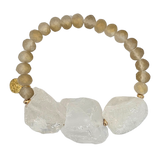 7mm Faceted Grey Agate Beads with Clear Quartz Stone Bracelet
