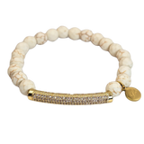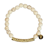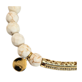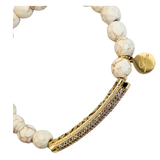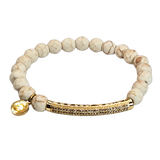 7mm Faceted Creamy Howlite Beads With Gold Brass Zircon Tube